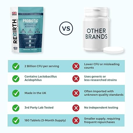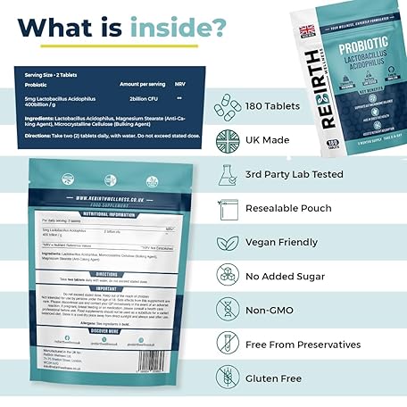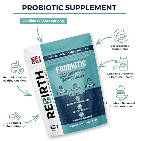 Sản phẩm Probiotics for Gut Health - 180 Tablets - Lactobacillus Acidophilus Probiotic - Probiotics for Women and Men - Gluten Free and Vegan Friendly - Made in UK - Rebirth Wellness đang được bán với giá ưu đãi là $11.6412 tại nước Anh.