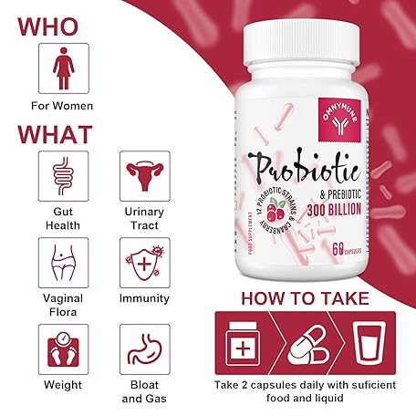 Thông tin sản phẩm Probiotics for Women 300 Billion CFU, 12 Strains + Prebiotics, Digestive & Vaginal Health, 120 Capsules