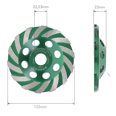 Thông tin sản phẩm PRODIAMANT Premium Diamond Grinding Cup Wheel 125mm for Concrete and Masonry, Durable Industrial Grade, Fits 5 Inch Angle Grinders, Optimal for Professional Use