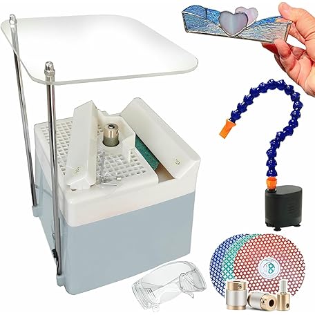 Professional Stained Glass Starter Kit with Glass Grinder Machine+3 Grinder Bits+3 Grinding Disc+water Pump+baffle
