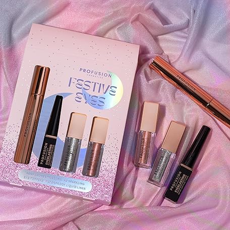 Sản phẩm Profusion Cosmetics Festive Eye Kits and Liquid Eyeshadow for Flawless Eye Catching Look, Finish Your Look With Classic Black Liquid Liner, and Lash Out Loud Lengthening With Curling Mascara đang được bán với giá ưu đãi là $14.715 tại nước Anh.