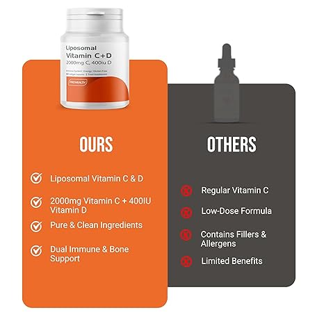 Thương hiệu PROHEALTH là cái tên nổi tiếng được rất nhiều khách hàng trên thế giới chọn lựa. Với kiểu dáng đẹp mắt, sang trọng, sản phẩm ProHealth Liposomal Vitamin C 2000mg + Vitamin D3 400IU - High Absorption Softgels | Immune Support, Antioxidant, Collagen & Bone Health | Non-GMO, Gluten-Free, Made in UK, 30-Day Supply là sự lựa chọn hoàn hảo nếu bạn đang tìm mua một món cho riêng mình.