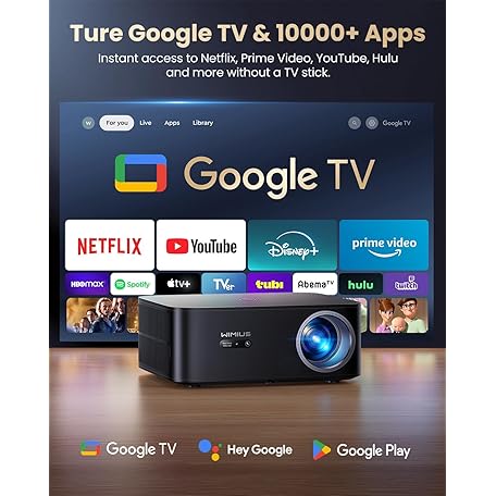 Thông tin sản phẩm Projector【1500 ANSI/Google TV/Netflix Disney+ Licensed】WiMiUS 4K Projector for Bedroom Full HD 1080P, Auto Focus/Keystone, WiFi 6 & Bluetooth Smart Outdoor & Indoor Home Cinema Projectors (Black)