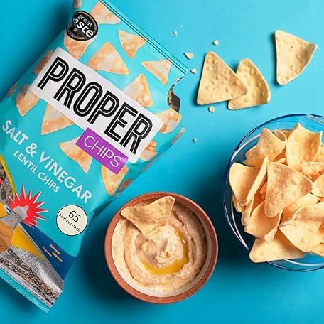 Thông tin sản phẩm PROPERCHIPS - Multipack Box Barbecue and Salt & Vinegar Lentil Chips, Vegan Gluten Free Snacks 14g, 32 Packs, (16 bags of each flavour) (1 Box)