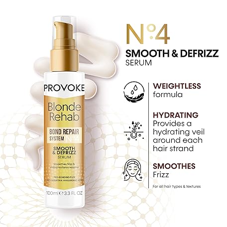 Sản phẩm PROVOKE Blonde Rehab N0'4 Smooth and DeFrizz Bond Repair Hair Serum 100 ml, Smoothes Frizz and Restores Volume in 1 Wash with Pro Bonding Complex, Keratin and Hyaluronic Acid, for Blonde Damaged Hair đang được bán với giá ưu đãi là $6.6926 tại nước Anh.