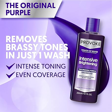 Thông tin sản phẩm PROVOKE Touch Of Silver Brightening Purple Shampoo 200 ml, Neutralises Yellow and Orange tones, Formulated with Violet and Blue Pigments