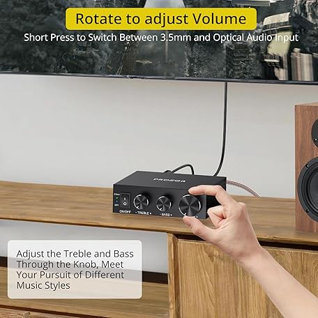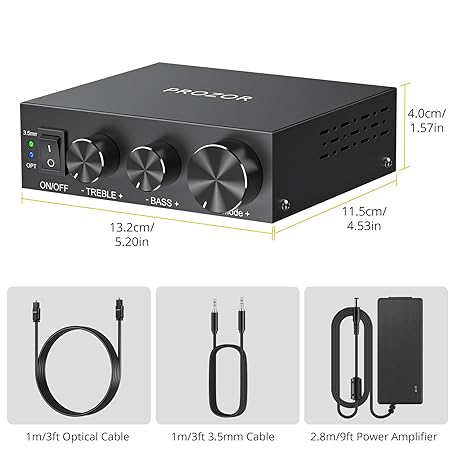 Thông tin sản phẩm PROZOR Stereo Amplifier 100W X 2 with Optical/3.5mm Input, TPA3221 Hi-Fi Audio, Bass & Treble Controls, 192KHz Audio Amplifier for Computer HDTV Bookshelf Passive Speaker