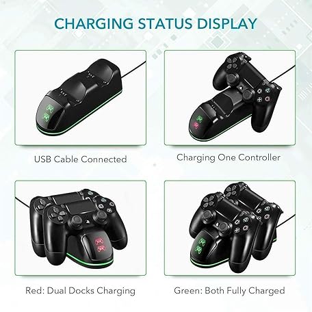 Thông tin sản phẩm PS4 Controller Charger, Controller USB Charging Station Dock for DualShock 4, Playstation 4 Charging Station for Sony Playstation4/PS4/PS4 Slim/PS4 Pro Controller (Black)