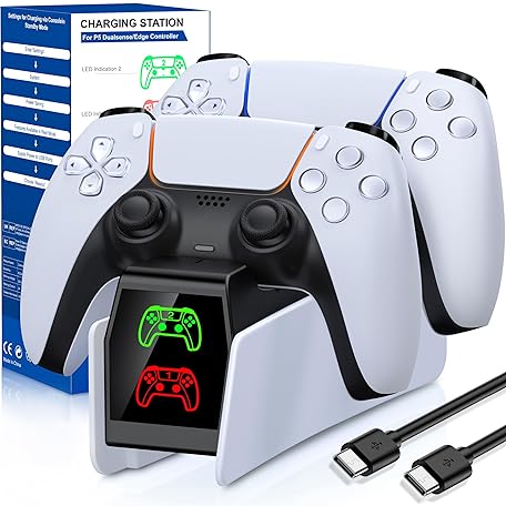 PS5 Controller Charger Station - 2.5H Fast Charging Dock with LED Indicator, Dual Controllers Charger for Dual-Sense & Edge, Compact Design and Safe Charging for Gamers