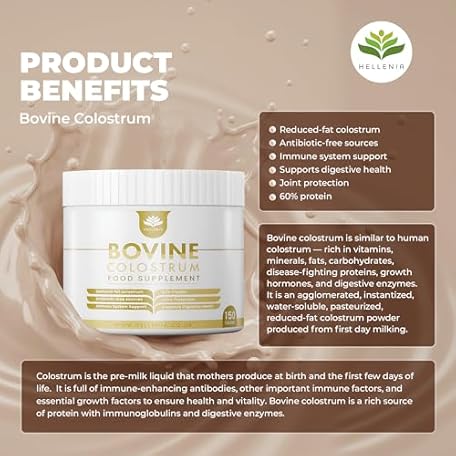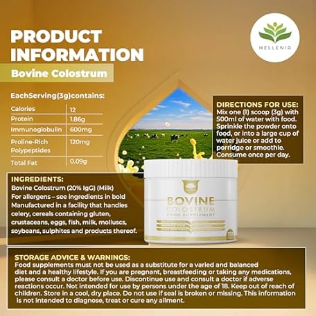 Sản phẩm Pure Colostrum Powder 100% Natural Bovine Colostrum from Grass-fed Cows | Reduced Fat | 20% Immunoglobulins G | Made in The UK by Hellenia - 150g tub đang được bán với giá ưu đãi là $29.0703 tại nước Anh.
