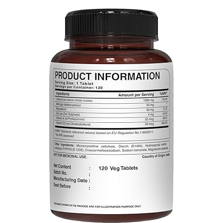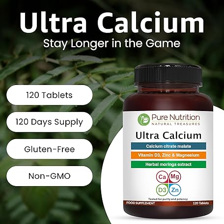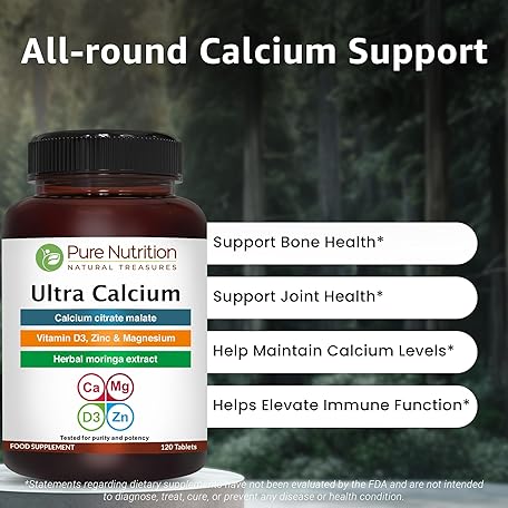 Thông tin sản phẩm Pure Nutrition Ultra Calcium 1000mg with VIT D3 + K2 | 120 Tab | Highly absorbable Supplement with Calcium Citrate Malate, VIT D3, K2, Moringa Oleifera, Magnesium and Zinc.