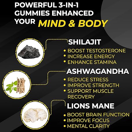Thông tin sản phẩm Pure Organic Himalayan Shilajit Gummies with Lion's Mane Mushroom and Ashwagandha 3-in-1 Max High Strength by MountSpirit™,Fulvic & Humic Acid and 85+ Minerals, for Energy, Immunity & Focus