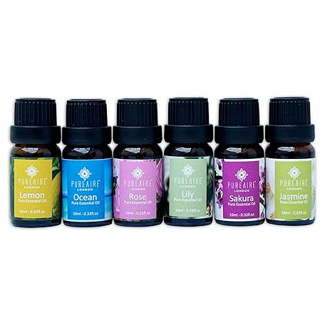 Sản phẩm PureAire Essential Oils Gift Set 6-Pack 6x10ml Aromatherapy Oils Diffuser Fragrance 100% Pure Essential for Diffusers for Home Sakura, Jasmine, Ocean, Lily, Rose & Lemon Floral Scents đang được bán với giá ưu đãi là $11.6412 tại nước Anh.