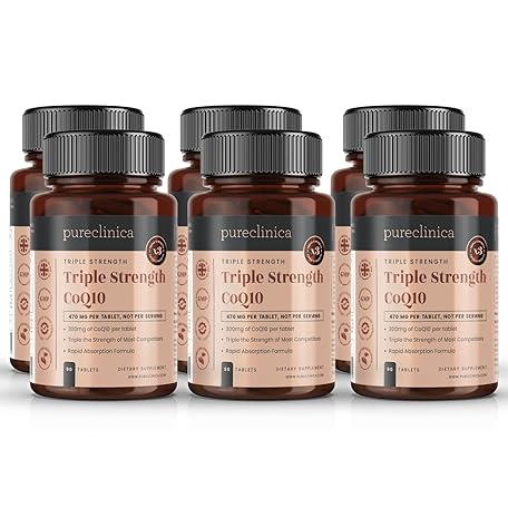 Pureclinica CoQ10 300mg x 540 Tablets (6 Bottles of 90) - 18 Months Supply - W/VIT C and Black Pepper