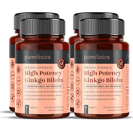 Pureclinica High Potency Ginkgo Biloba 30,000mg x 360 Tablets (4 Bottles of 90) - 12 Months Supply - 5 Times The Strength of Competitor Products