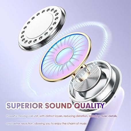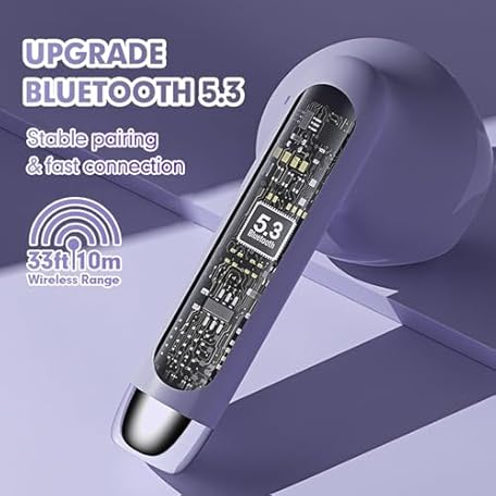 Thông tin sản phẩm Purple Blue Tooth Ear Buds Wireless Bluetooth Earbuds for iPhone Android Phone, Waterproof Bluetooth 5.3 Headphones Deep Bass TWS Wireless Earphones, Small Earbuds for Small Ear Canals for Kids Women