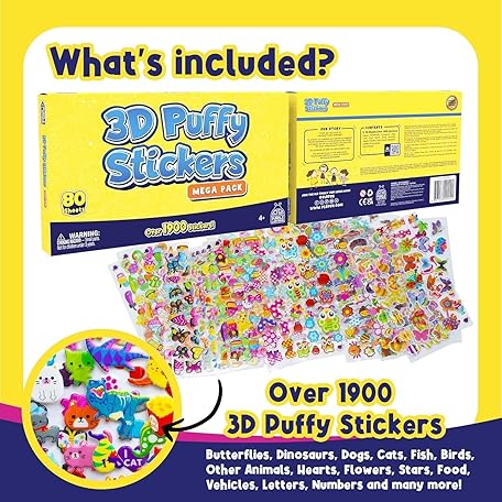 Thông tin sản phẩm PURPLE LADYBUG 2000 PCS 3D Puffy Stickers for Kids - 80 Unique Sticker Sheets with Animals, Dinosaurs & Letters - Perfect Christmas Gifts, Stocking Fillers, Classroom Rewards