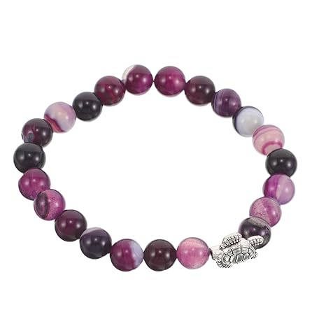 Purple Natural Stone Turtle Bracelet Elastic Stretch Beaded Jewelry for Women Comfortable Daily Wear Friendship Festival Accessory