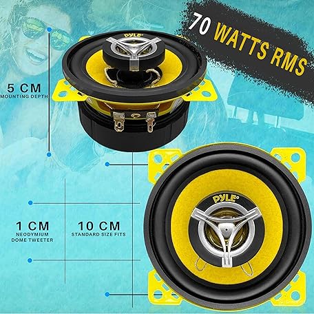 Thông tin sản phẩm Pyle 10cm Car Door Speakers 140W – 2-Way Coaxial Stereo Audio, 4 Ohm Full Range Sound, Compact Mount Design, Easy Install, Replacement Speaker Set – 2 Pieces