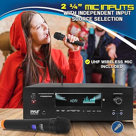 Sản phẩm Pyle Wireless BT Streaming Home Theater Receiver - 5.2-Ch Surround Sound Stereo Amplifier System w/ 4K Ultra HD Support, MP3/USB/AM/FM Radio (1000 Watt MAX), w/ 2CH UHF Wireless Microphone đang được bán với giá ưu đãi là $282.4626 tại nước Anh.