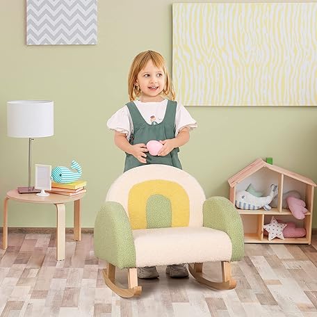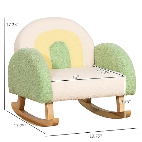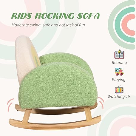 Thông tin sản phẩm Qaba Kids Sofa, Toddler Rocking Chair with Solid Wooden Frame, Faux Lamb Fleece Fabric, Kids Arm Chair for Nursery or Playroom, Ages 18-36 Months, Green