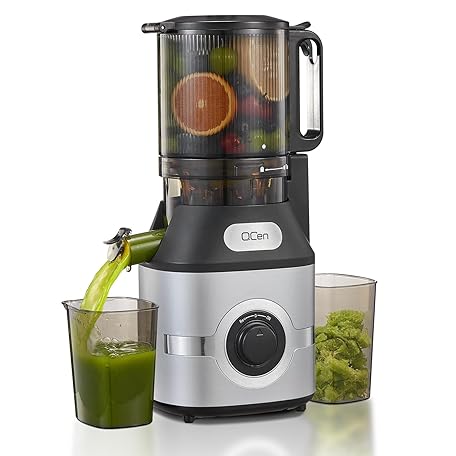 QCen Cold Press Juicer, 5.5” Wide Feed Chute Slow Masticating Juicer Machine for Whole Fruits and Vegetables, Easy to Clean, Silver
