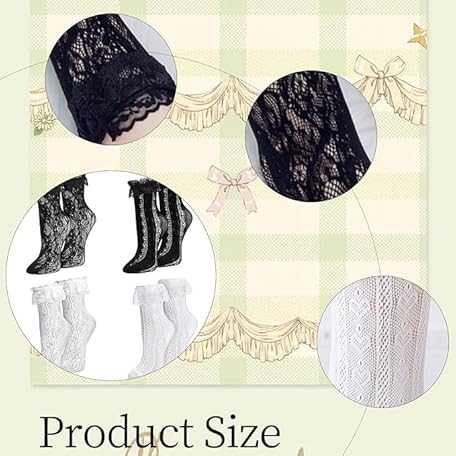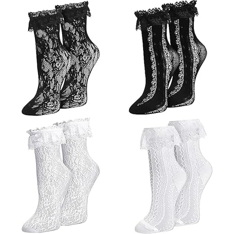 Thông tin sản phẩm QCZJ 4 pairs Women Ruffle Socks,Black & White Lace Socks,Sexy Frilly Socks for Women,Cute Lace Trim Socks Lolita Socks,Ankle Socks with Ruffles for Girls Ladies Princess Wedding
