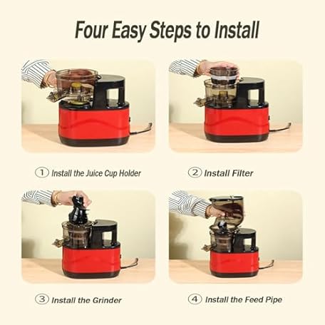 Thông tin sản phẩm QIeAny Large-Diameter Slow-Speed Masticating Juicer, Juicer for Separating Freshly Squeezed Fruits And Vegetables, Pure Juice Yield 98.5% + 150W Copper Motor + Overheating Protection, for Citrus,Red