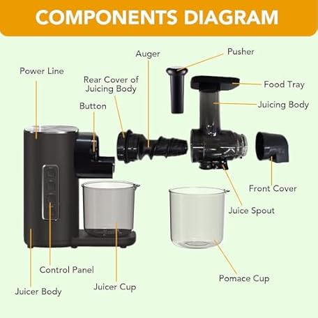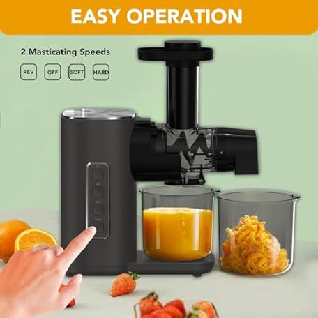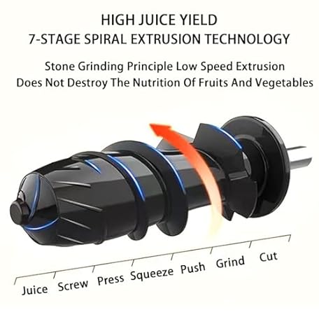 Thông tin sản phẩm QIeAny Silent Masticating Juicer with 97% Pure Juice Rate, 150W Slow Speed Juicer, Fresh Juicer with 2-Speed Mastication Speed+7-Stage Pressing Screw+Residue Juice Separation+Automatic Reversal,Black