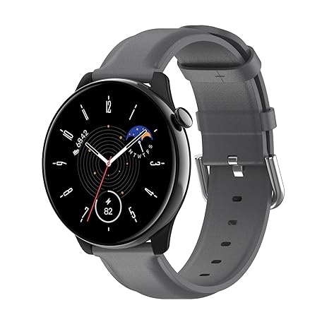 QINOUK Strap for Xiaomi Watch S1 Active, [Breathable] Genuine Leather Watch Strap, Tang Buckle Design, Replacement Bracelet Strap for Xiaomi Watch S1 Active-Gray