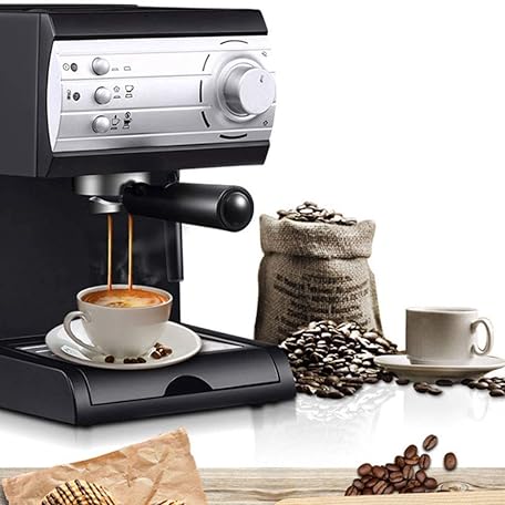 QJRGUY Espresso Machine Capacity Powerful Pressure Brewer Coffee Maker with Milk Frother Wand for Cappuccino Latte and Mocha(15 Cup), Black
