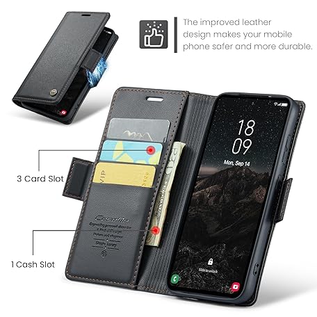 Thông tin sản phẩm QLTYPRI Wallet Case for Samsung Galaxy S25 FE, PU Leather Magnetic Flip Folio Case with RFID Blocking Card Slots Kickstand Shockproof Protective Phone Case Cover for Samsung S25 FE – Black