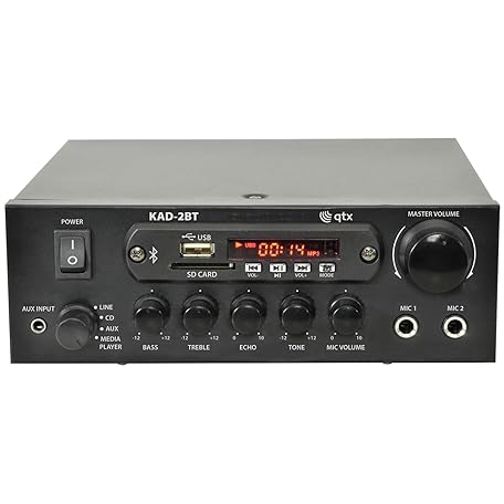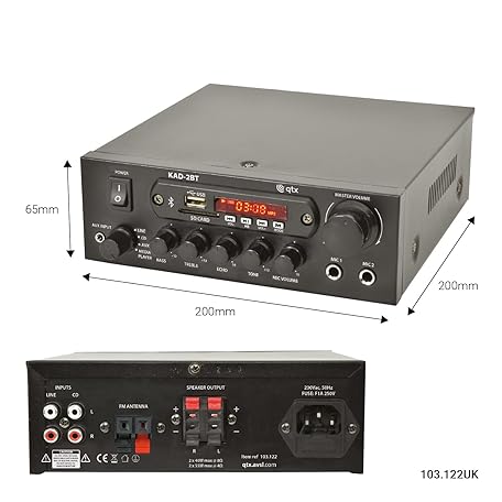 Thông tin sản phẩm QTX KAD-2BT Digital Stereo Amplifier Bluetooth 110W | AV Receiver Stereo HiFi Amp | Class D, FM, USB, SD, Echo, Mic, RCA, Home Cinema, Turntable, DJ, Streaming, Karaoke, TV, Desktop, Speaker System