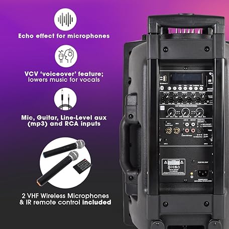 Thông tin sản phẩm QTX, QX12PA Wireless Portable PA System Complete with Two Wireless Microphones, Bluetooth Connectivity, 8-Hour Battery life, Ideal for Events, Performances, Presentations