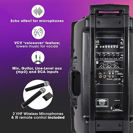 Thông tin sản phẩm QTX QX15PA Wireless Portable PA System Complete with Two Wireless Microphones, Bluetooth Connectivity, 8-Hour Battery life, Ideal for Events, Performances, Presentations
