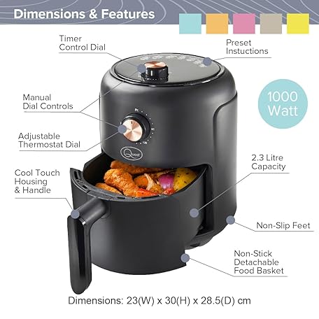 Sản phẩm Quest 2.3L Small Air Fryer / 1-2 People/Manual Dial Controls/Non-Stick Detachable Food Basket / 60 Minute Timer/Cool Touch/Auto-Shut Off & Overheat Protection / 1000W / 33870 đang được bán với giá ưu đãi là $41.2238 tại nước Anh.