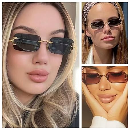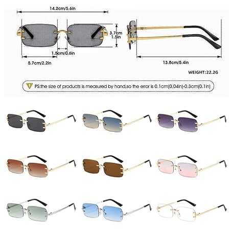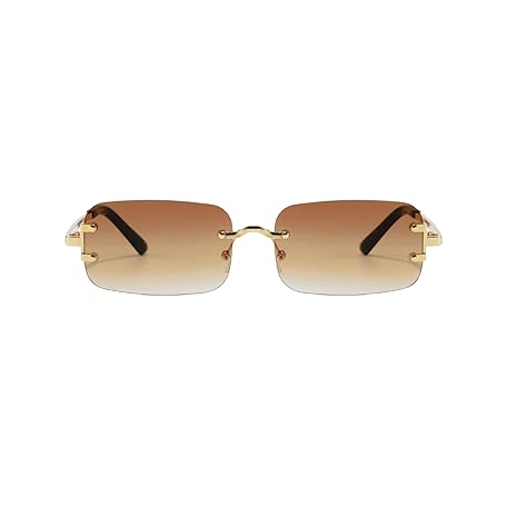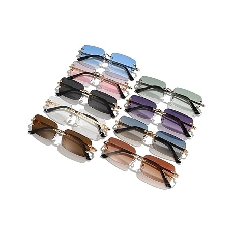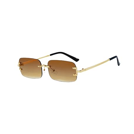 QVKUUT Retro Rectangular Sunglasses Frameless Sunglasses Fashion Glasses for Men and Women