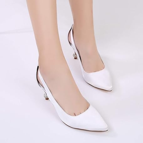 Sản phẩm QZPM Womens Dress Pumps Slip on Mid High Heels Pointed Toe Closed Satin Party Bridal Shoes đang được bán với giá ưu đãi là $106.82 tại nước Anh.
