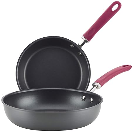 Rachael Ray 81128 Create Delicious Hard-Anodized Aluminum Nonstick Deep Skillet - Pack of 2, 9.5 & 11.75 in. - Burgundy Handles