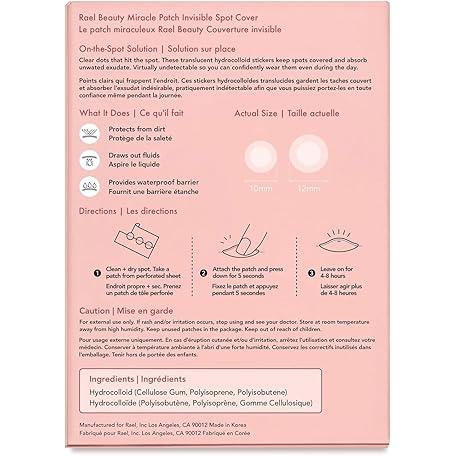 Thông tin sản phẩm Rael Pimple Patches, Miracle Invisible Spot Cover - Korean Skincare, Hydrocolloid Acne Spot Treatment Patch, Face Stickers, Vegan & Cruelty Free, 2 Sizes (96 Patches)