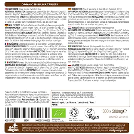 Sản phẩm Rainforest Foods Organic Spirulina Tablets 500mg Pack of 300, Pouch đang được bán với giá ưu đãi là $17.2547 tại nước Anh.