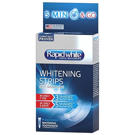 Thương hiệu RAPIDWHITE là cái tên nổi tiếng được rất nhiều khách hàng trên thế giới chọn lựa. Với kiểu dáng đẹp mắt, sang trọng, sản phẩm Rapid White 5 Minute Teeth Whitening Strips | 5 Shades Whiter in 4 Days | Strips Dissolve in 5 Minutes | Fast Acting & Easy to Use | Inspired by Dentists | Mint Flavour | Clinically Proven | 16 Strips là sự lựa chọn hoàn hảo nếu bạn đang tìm mua một món cho riêng mình.