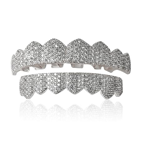 Rapper Men and Women Fashion Accessories Iced Out Diamond Grills Gold/Silver Finish 8 Top Teeth 8 Bottom Tooth with Extra Molding Bars