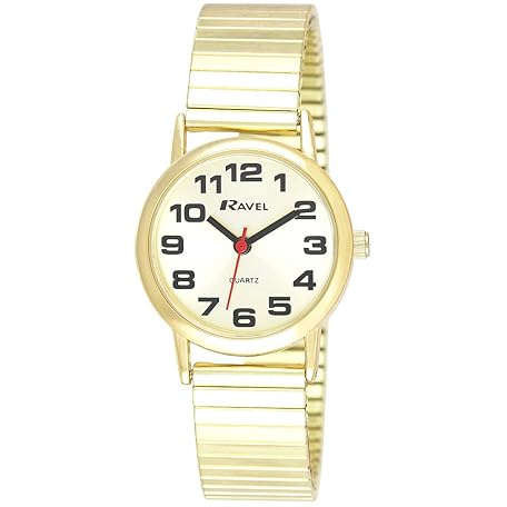 Ravel Women's Easy Read Watch with Big Numbers on Stainless Steel Expander Bracelet - Gold Tone/Champagne Dial