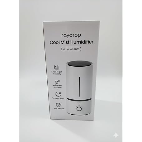 Thông tin sản phẩm raydrop Humidifiers for Bedroom, Cool Mist Humidifiers for Babies, 1.70L Quiet Ultrasonic Humidifier, Space-Saving, Filterless, Auto Shut Off - (White, UK 220V)