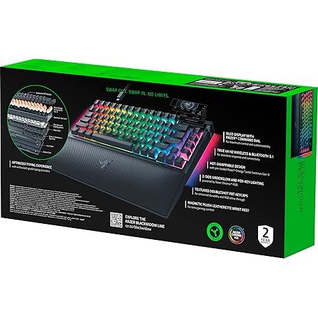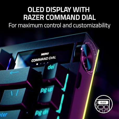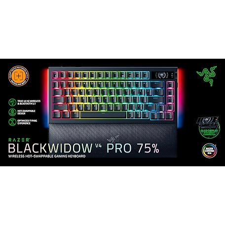 Thông tin sản phẩm Razer BlackWidow V4 Pro 75% - Wireless Hot-Swappable Gaming-Keyboard - OLED display (command dial, 4K Hz & Bluetooth connectivity, magnetic palm rest) US Layout ISO | Black