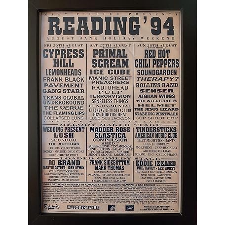 Reading Festival 1994 line-up - Cypress Hill - Primal Scream - Ice Cube - Red Hot Chili Peppers - framed print