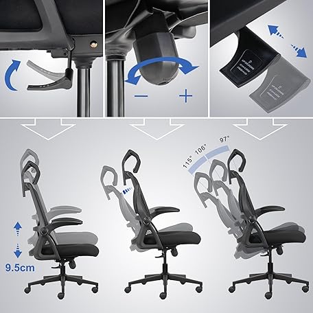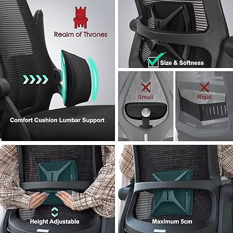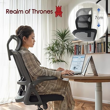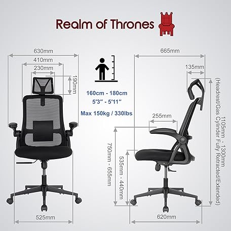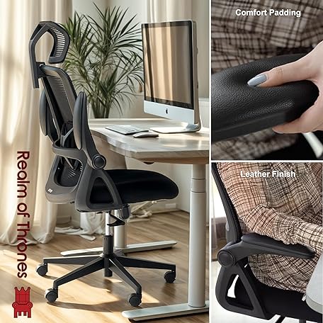 Thông tin sản phẩm Realm of Thrones CAPTAIN Ergonomic Office Chair for Home, Heavy Duty Steel Base, Versatile Flip-up Armrests, Adjustable Lumbar Support, Mesh Back Comfort Cushion Seat for Computer Desk/Gaming (Black)