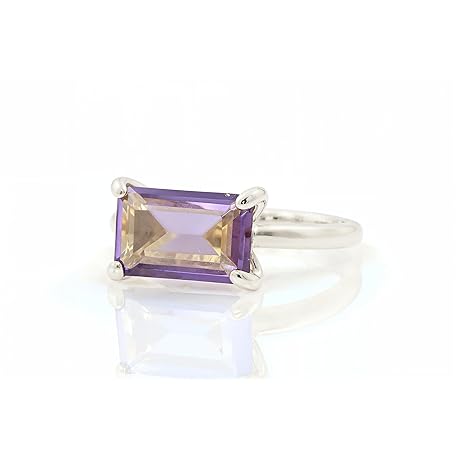 Rectangle Purple Amethyst Ring by Anemone - Cocktail Birthstone Rings, Stackable Rings, February Birthstone Jewelry - Handmade Rings for Women - with Signature Gift Box