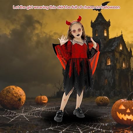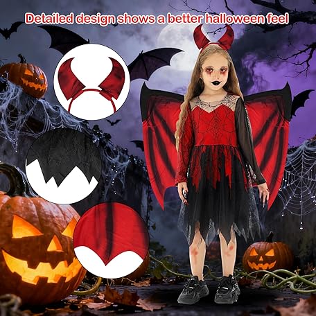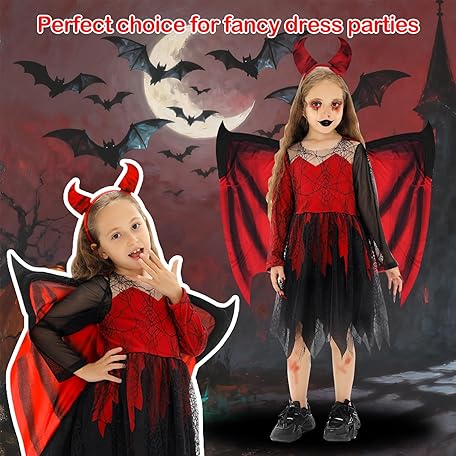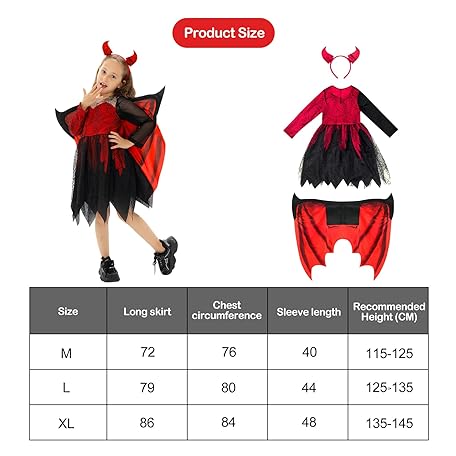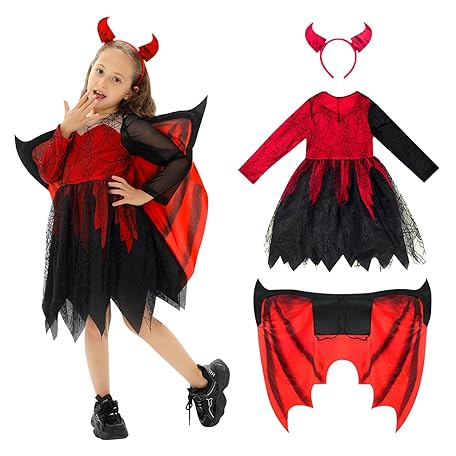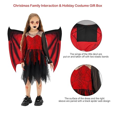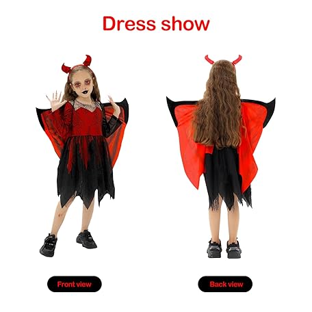 Thông tin sản phẩm Red Devil Costume Girls - with Red Hairband Wings, Horror Fancy Dress Up for Halloween Party Cosplay, Halloween Costumes for Kids